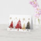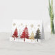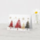 gold foil Christmas scene, red holiday trees, sparkling snowflakes, white background design, festive decor art, Christmas tree pattern, winter holiday scene, cheerful Christmas design, snow-covered trees, festive forest art