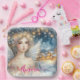 Festive gold watercolor ethereal frost snow angel. Your custom name is written in a pink hand lettered script.