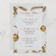 Design your own Christmas dinner menu using our sophisticated template that showcases gold Christmas decorations and green accents within a white embossed border, with the option to personalise the text style.
