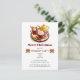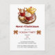 This festive Christmas invitation card features a cosy holiday scene with a tray of warm drinks, whipped cream-topped hot chocolate, and a golden teapot surrounded by cinnamon sticks and festive treats and candies. The "Merry Christmas" greeting in bold red adds a classic holiday touch, while elegant gold bows accent the overall design. Perfect for inviting guests to a holiday party, it sets a warm and inviting tone for your seasonal celebration, making it ideal for spreading holiday cheer.