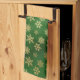 Festive Green and Gold Foil Winter Snowflakes Tea Towel