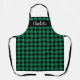 Bold green and black buffalo plaid with a personalised name in elegant script on a black header panel makes a striking monogram apron. A fresh alternative to the classic red buffalo check that works for Christmas entertaining, everyday cooking, or as a fun gift. Name is fully customisable.