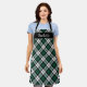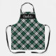 Rich green, black, and white Black Watch plaid with a personalised name in flowing script on a black header panel creates a festive monogram apron. A beautiful Christmas gift, holiday hostess present, or everyday kitchen accessory for the tartan lover. Name is fully customisable.