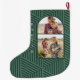 Festive Green Boho Geometric Two Photo Large Christmas Stocking
