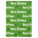 Festive solid green background with Merry Christmas written in fun white snow capped lettering. Small decorated Christmas trees with yellow star fun for the holiday and entertaining. Original designs by TamiraZDesigns.