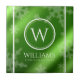 Add a festive touch to year-end and Christmas celebrations with this elegant tile, which features snowflakes falling on a faux metallic forest green foil / ombre / moire background. Add initial / monogram (or logo), name, year, or custom text as desired.