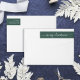 These modern and stylish Christmas holiday return address wrap-around labels feature the words "Merry Christmas" in elegant white script and text on a festive green background.