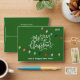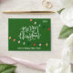 Modern, festive and cheerful Merry Christmas script calligraphy decorated with bright and colourful strings of Christmas lights on green background. Personalise with family name and customise year, Happy New Year message and address in the back. Envelope created for gift cards.