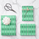 All 3 wrapping paper sheets are 'geometric ovals and squares' in various shades of green or monochrome. Design can be used for Christmas, St. Patrick's Day and throughout the year for different occasions.