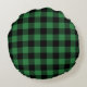 Customisable round pillow featuring rustic, stylish and classic green plaid pattern. Other colours are available.