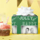 Festive Green White Typography Christmas Photo Wrapping Paper. Green background with snowflakes and white Merry, Happy, Jolly typography with a custom photo - insert your favourite photo into the template and make your personal unique Christmas gift.