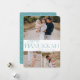 Our festive and elegant Hanukkah card design is the perfect way to show off three of your favourite family photos. Design features "Joyous Hanukkah" in elegant dusty aqua serif typography and hand lettered script, with your family name. Cards reverse to a white star pattern.
