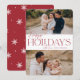 Our festive and elegant holiday card design is the perfect way to show off two of your favorite family photos. Design features "Happy Holidays" in elegant cranberry red serif typography and hand lettered script, with your family name. Cards reverse to a white winter snowflake pattern.