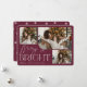 Our festive and elegant holiday card design is the perfect way to show off three of your favourite family photos. Horizontal or landscape orientated design features "Merry & Bright" in white typography and hand lettered script, with your family name beneath on a burgundy background.