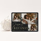 Our festive and elegant holiday card design is the perfect way to show off three of your favourite family photos. Horizontal or landscape orientated design features "Season's Greetings" in shining gold foil typography and hand lettered script, with your family name beneath on a navy blue background.