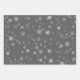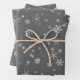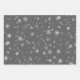Festive Grey White Snowflake Pattern Holiday Wrapping Paper Sheets. Snowflakes everywhere. Beautiful white snowflakes in different sizes and shapes on a grey background.