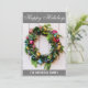 Festive Happy Holidays Wreath Grey Silver Glitter Holiday Card