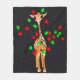 Festive holiday giraffe, red green twinkle lights fleece blanket