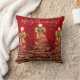 Elegant Merry Christmas / Happy Holidays "throw pillow" Gold Trees with bows on red.