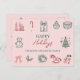This elegant holiday greeting card features charming hand-drawn Christmas illustrations, including candles, ornaments, a Christmas tree, a teddy bear, a rocking horse, and festive greenery, all arranged on a soft blush pink background. With a warm "Happy Holidays" message and customisable family name, this card is perfect for sending heartfelt holiday wishes to friends and loved ones. A stylish blend of modern minimalism and nostalgic holiday charm. At the back, you can write your text and your names.