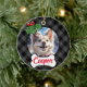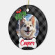Festive holiday grey Plaid Holly berries leaves Ceramic Ornament
