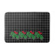 Festive Holiday Grey Plaid with Holly Sprigs Bath Mat