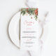 Set the perfect holiday mood with this editable Christmas menu template, adorned with cosy evergreen branches and charming ornaments. Ideal for any festive gathering, this customisable menu adds a warm and inviting touch to your table décor. Easily personalise it to highlight your holiday dishes and impress your guests with a beautifully crafted menu that enhances the magic of your Christmas celebration!