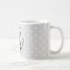 Celebrate the magical and festive holiday season with our custom holiday mugs. Our festive holiday design features our beautiful hand drawn festive holiday racoon etching illustration with laurel wreath and family monogram crest design. Modern white and grey design with a modern polka dot pattern and personalised with family monogram. All illustrations contained in this festive holiday racoon family monogram holiday mug are hand-drawn original artwork by Moodthology. You can customise the text size, text colour, font and layout for your own personal design preference.