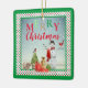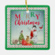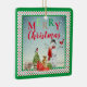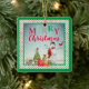 This colourful, nostalgic ornament has a festive watercolor winter scene, complete with a jolly snowman, gifts, a little Christmas tree planted in a rustic wooden barrel and the cutest little puppy dog. Fluffy white snowflakes are falling all around and there is a red cardinal sitting on the snowman's hand and a little black and red bird sitting on top of the tree. Fun typography says MERRY in caps in different colours and Christmas in a modern red script. It's bordered with red and green polka dots on a white background with green edges. The reverse side has a stack of Christmas gifts on the bottom and the rest is completely customisable with a New Year sentiment, your last name, family first names and year. This would make a lovely gift for a co-worker, neighbour, babysitter or anyone else you want to give a special thoughtful gift to this Christmas.