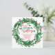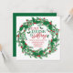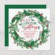 Contemporary wreath Eat Drink & Be Merry Christmas Party Invitation featuring a beautiful evergreen, holly & red berry wreath set on a crisp white background. Flip our stunning holiday dinner party invitation over to view a green back for an extra special touch. Perfect for all your winter get togethers... office party, company party, dinner party, cocktail party & Tree trimming party.