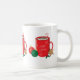 A festive mug for the Holidays , featuring a red mug filled with hot cocoa and topped with marshmallows , as well as a star Christmas cookie and a couple of small ornaments on the side .