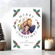 Festive Holly Botanical Greenery Photo Christmas Holiday Card.