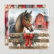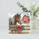 Festive Horse and Red Rustic Barn Christmas Holiday Card