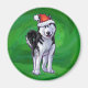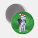 Animal Parade Festive Husky Dog in Santa Hat Christmas Gifts and Supplies features our original art of a cute black and white Siberian Husky decked out for the holidays with a bright red Santa hat on his head and a festive green holly wreath on his back side with a Christmas red bow. This fun pet art is perfect for Husky lovers, dog lovers, and humourous animal art lovers, and Christmas lovers of all ages. Join the Animal Parade and bring a smile to the face of someone you love with a gift of our festive Husky dog dressed up for the holidays. Woof! Custom designs available.