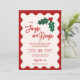 Embrace the holiday spirit with our festive 'Red Jingle and Mingle Holiday Party Invitation.' This invitation offers a contemporary twist on classic holiday charm, featuring a scalloped frame in a vibrant holiday red that infuses your celebration with festive flair. The playful script adds a touch of fun, ensuring your Christmas gathering starts off on a memorable note the moment your guests receive their invitations!
