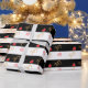 Festive joy heart pattern on striped black and white background Gift Wrapping Paper.