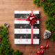 Festive Joy Heart Pattern on Striped Black & White Wrapping Paper