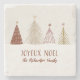 Stylish festive square design features a classy display of snowy Christmas trees in red, gold & pink on a snowy neutral lightly striped cream beige background. The bottom section is covered in white snow with "Joyeux Noel" is elegant classic typography. Add a custom name or line of custom text in matching red script with the simple-to-use template. If you'd like to add a holiday phrase other than Joyeux Noel, I will be happy to make that adjustment for you. Please message or email beachpausedesigns@gmail.com for further customisations.