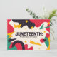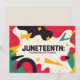 Send warm wishes for Juneteenth with this vibrant and artistically designed artwork. Featuring a cheerful "Happy Juneteenth" message in a unique block-print style with symbolic elements, this design is a wonderful way to celebrate Freedom Day. Perfect for expressing joy and the spirit of liberation on this important day in African American history.