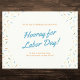 Celebrate Labour Day in style with this fun and festive postcard, featuring the phrase 'Hooray for Labour Day' surrounded by colourful confetti. The bright and cheerful design captures the spirit of relaxation and celebration, making it perfect for sending appreciation and holiday wishes to friends, family, or colleagues. Whether you’re recognising someone's hard work or just spreading some holiday cheer, this postcard is a lively way to mark the occasion.