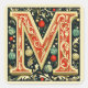 Festive Letter M: Gold, Red, Green, and Cream Square Sticker