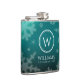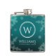 Festive Light Blue Foil Snowflakes Monogram Name Hip Flask
