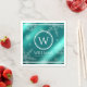 Festive Light Blue Foil Snowflakes Monogram Name Napkin