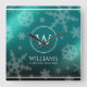 Festive Light Blue Foil Snowflakes Monogram Name Square Wall Clock