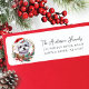 This festive return address label features a cute Maltese dog wearing a Santa hat framed with a Christmas pinecone wreath. It's the perfect way to add a touch of holiday cheer to your mail and get noticed by everyone who sees it.