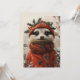 A delightful and whimsical illustration of a meerkat dressed for the winter season. The meerkat is wearing a vibrant red coat, a knitted scarf, and a cosy hat adorned with holly and berries, surrounded by snowy branches. The warm, festive colours and gentle snowfall create a heartwarming holiday atmosphere perfect for the season.