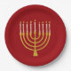 Festive Menorah Hanukkah Celestial Candle Ruby Red Paper Plate