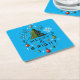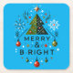 Festive Merry and Bright Christmas Tree Design Square Paper Coaster