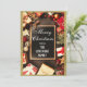 Festive Merry Christmas holiday card with a sparkly gold glitter sparkles border and red gifts with bows surrounding a black chalkboard on rustic brown wood. This card features the words "Merry Christmas" in an elegant hand lettered script, and your family surname in white.