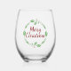 Festive Merry Christmas Holly Wreath Party Stemless Wine Glass
